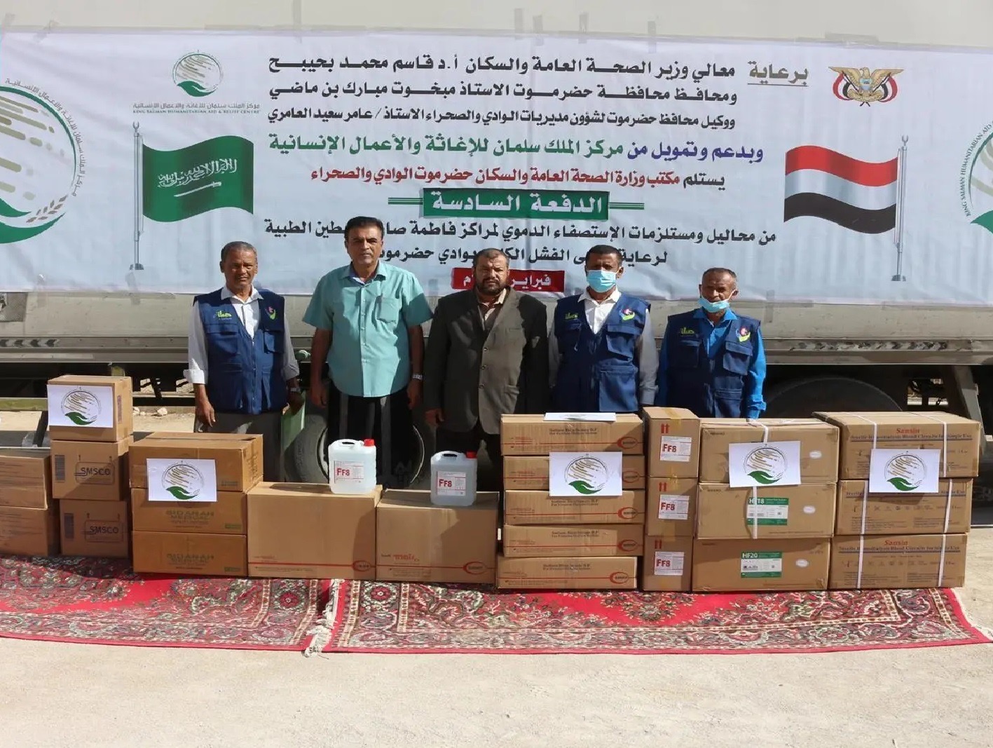 مركز الملك سلمان للإغاثة يسلّم بشبوة شحنة من محاليل ومستلزمات الغسيل الكلوي وبمأرب الدفعة السادسة من محاليل ومستلزمات الاستصفاء الدموي باليمن