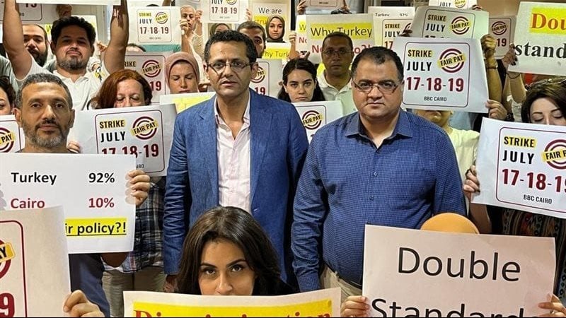 وأعلن العاملون في مكتب هيئة الإذاعة البريطانية في القاهرة، الدخول في إضراب عن العمل لمدة ثلاثة أيام من 17 وحتى 19 من يوليو الجاري، وذلك احتجاجًا على تدني الرواتب، وتدهور الأوضاع المعيشية، فضلا عن السلوك التمييزي الذي تتعمد الإدارة في لندن انتهاجه ضد مكتب القاهرة، فيما يخص السياسات المالية.