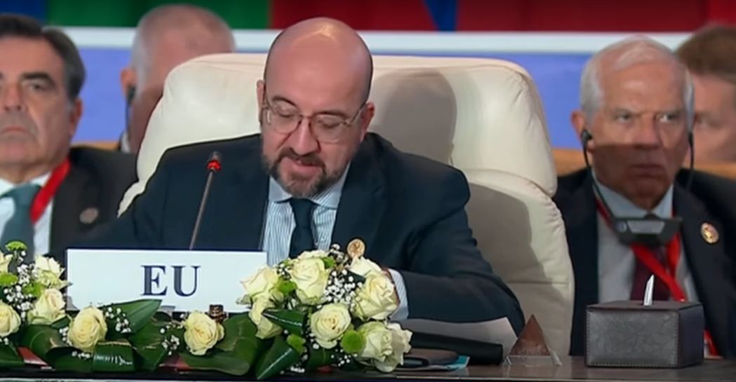 قال شارل ميشيل رئيس المجلس الأوروبي أوجه الشكر للرئيس عبدالفتاح السيسي على هذه المبادرة ودعوة الاتحاد الأوروبي بشأن عملية السلام