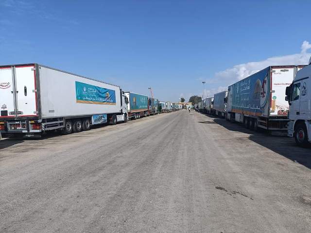 وأضافت أنه بذلك، تصل عدد الشاحنات المستلمة منذ تاريخ 21 أكتوبر 2023 وحتى اللحظة الى 980 شاحنة، أي ما يعادل حوالي 42 شاحنة في اليوم الواحد، فيما لم تسمح سلطات الاحتلال بإدخال الوقود حتى اللحظة.