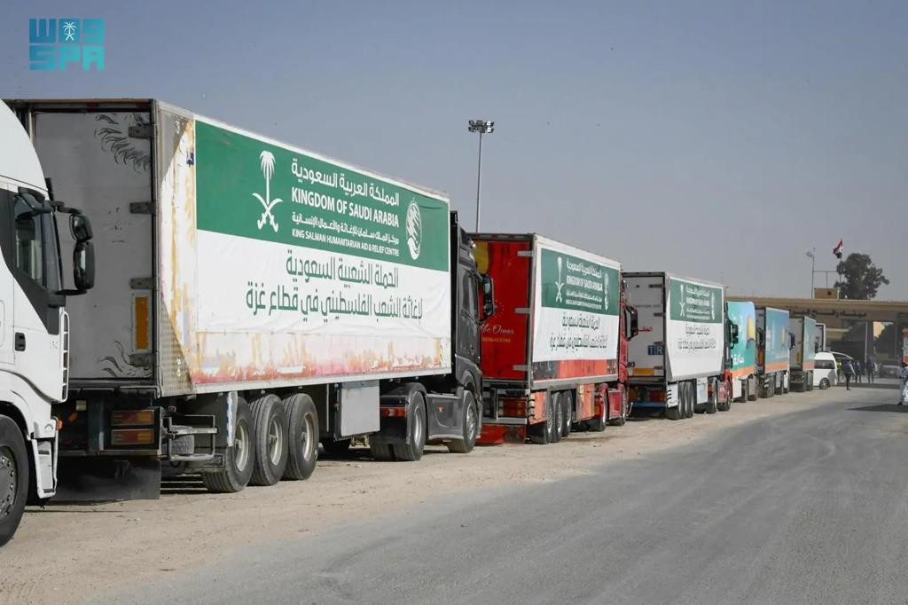قوافل الإغاثية السعودية تتوجه إلى قطاع غزة عبر معبر رفح الحدودي