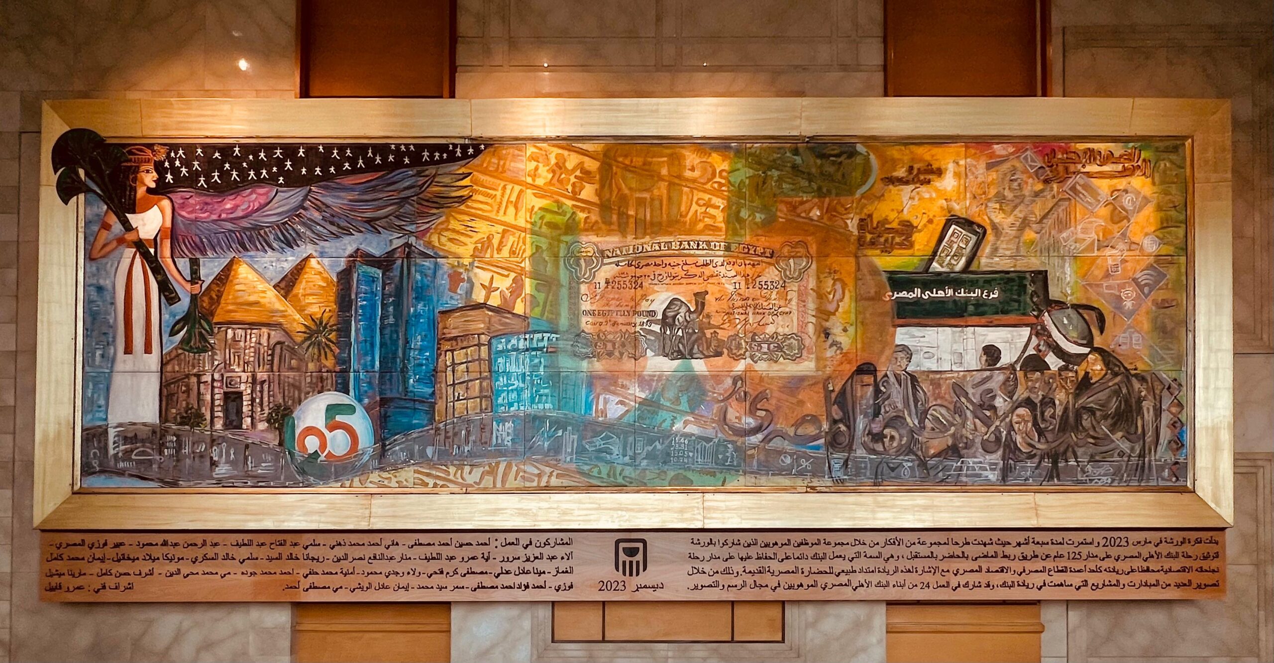 للعرض الدائم بمقره الرئيسي.. البنك الأهلي المصري يتيح جدارية فنية أبدعها فريق عمل من العاملين الموهوبين لتخلد مسيرة 125 عاما من الإنجازات