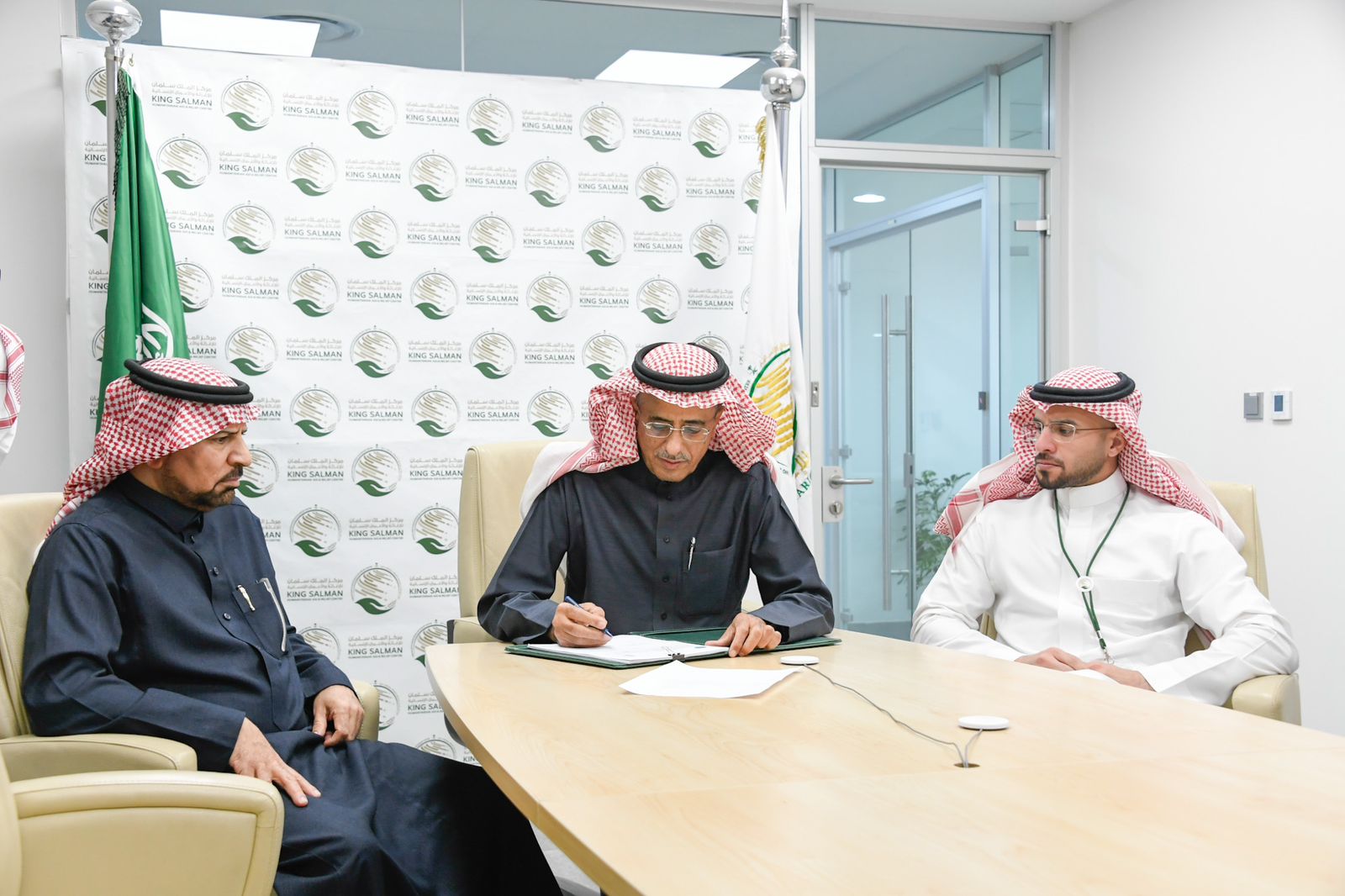 وقع الاتفاقية مساعد المشرف العام على المركز للعمليات والبرامج المهندس أحمد بن علي البيز، ومعالي الأمين العام للهيئة الخيرية الأردنية الهاشمية للإغاثة والتنمية والتعاون العربي والإسلامي الدكتور حسين بن محمد الشبلي.