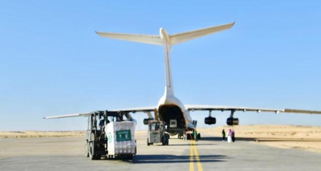 وصلت إلى مطار العريش الدولي بجمهورية مصر العربية اليوم، الطائرة الإغاثية السعودية الـ ٣٧، والتي يسيّرها مركز الملك سلمان للإغاثة تحمل على متنها مواد غذائية وطبية وإيوائية بوزن إجمالي يبلغ 23 طنًا، تمهيداً لنقلها إلى المتضررين من الشعب الفلسطيني داخل قطاع غزة.