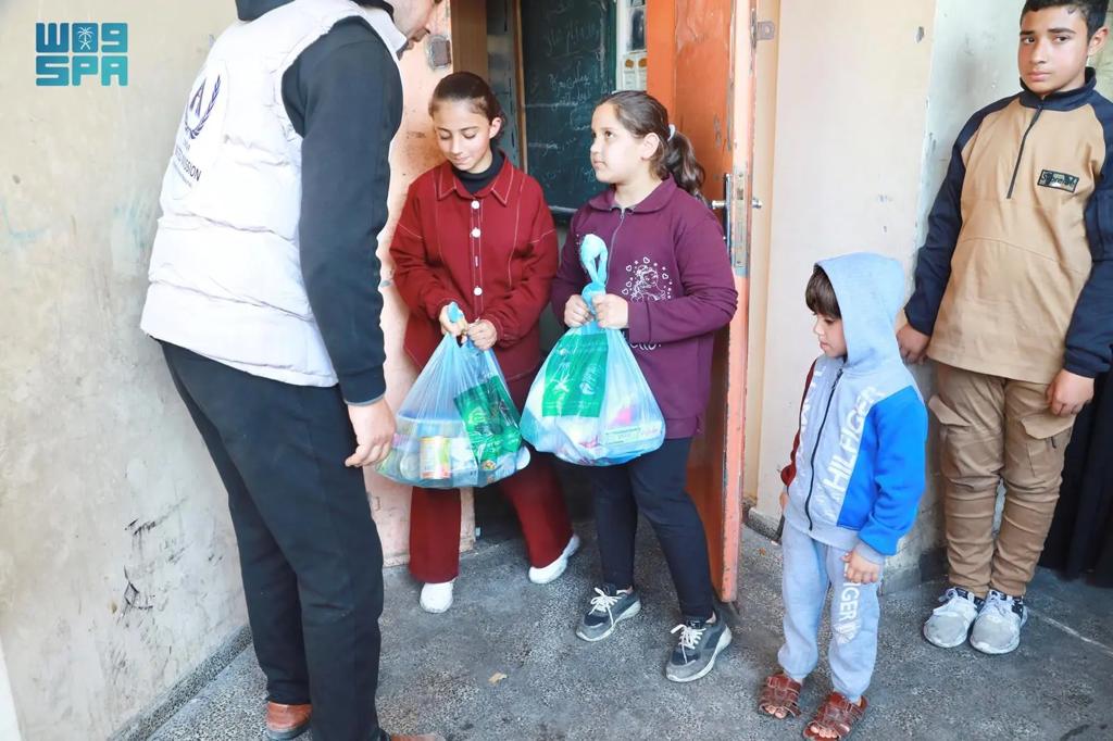 مركز الملك سلمان للإغاثة يوزع سلال غذائية للنازحين والمتضررين برفح جنوب قطاع غزة
