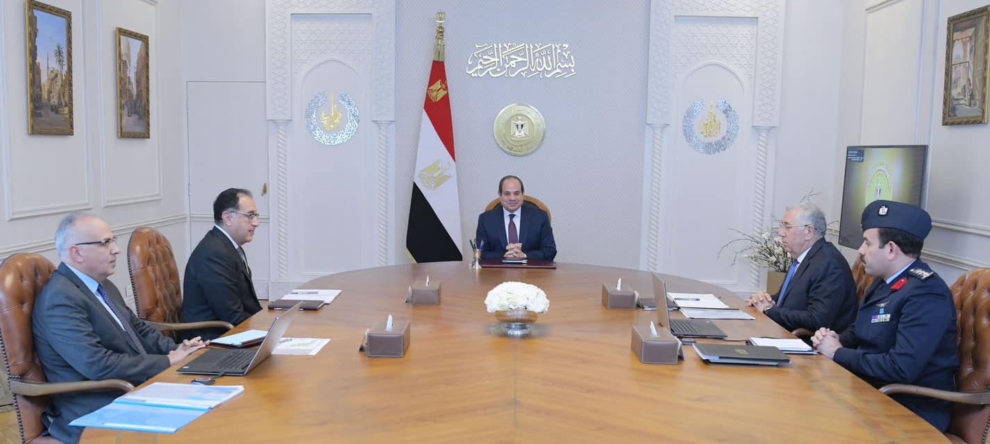 اجتمع الرئيس عبد الفتاح السيسي، اليوم الأربعاء، مع الدكتور مصطفى مدبولي رئيس مجلس الوزراء، والسيد القصير وزير الزراعة واستصلاح الأراضي، والدكتور هاني سويلم وزير الموارد المائية والري، والعقيد الدكتور بهاء الغنام المدير التنفيذي لجهاز مستقبل مصر للتنمية المستدامة.