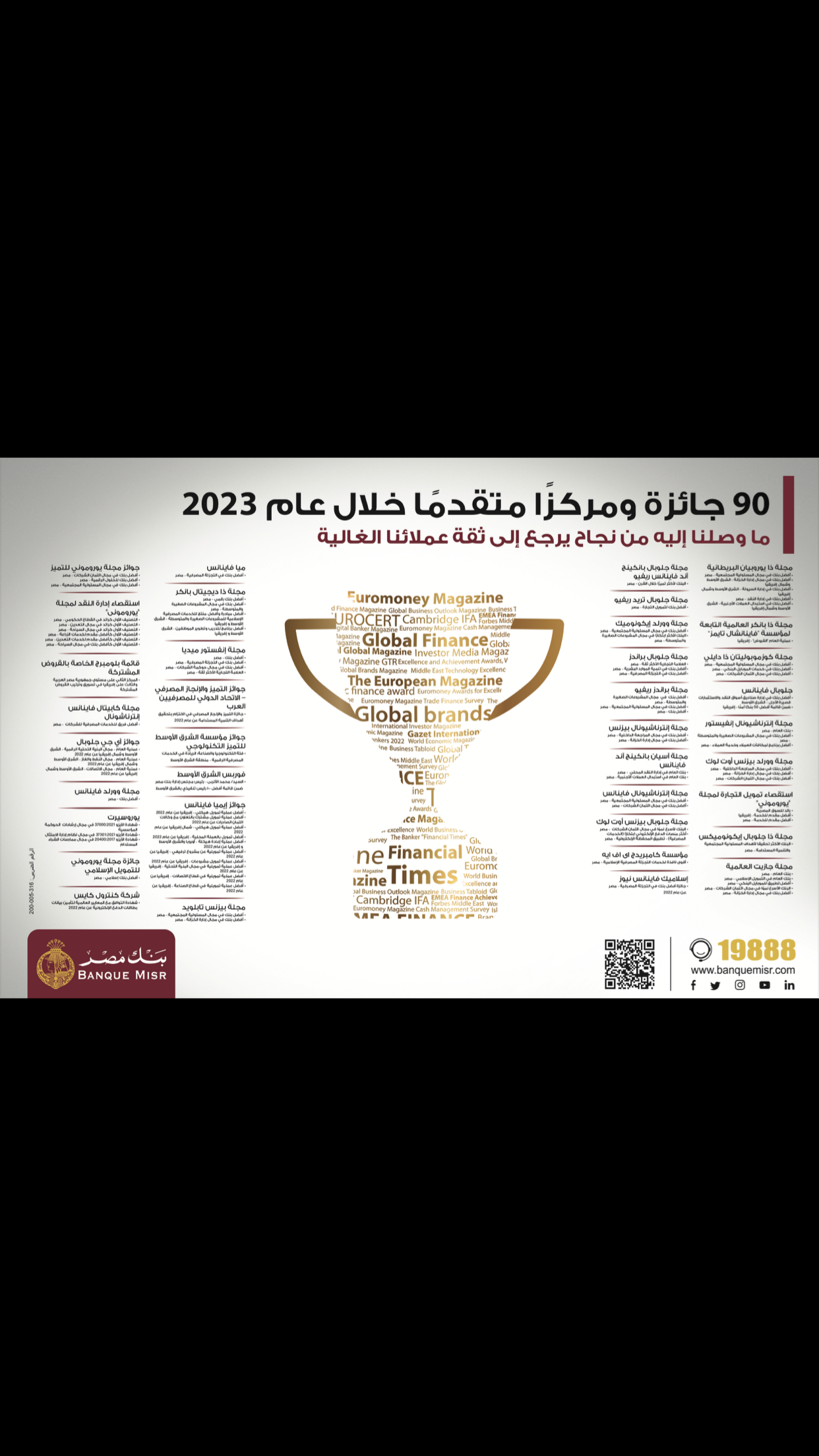 بنك مصر يحصل على 90 جائزة ومركزاً متقدماً من كبرى المؤسسات العالمية خلال عام 2023