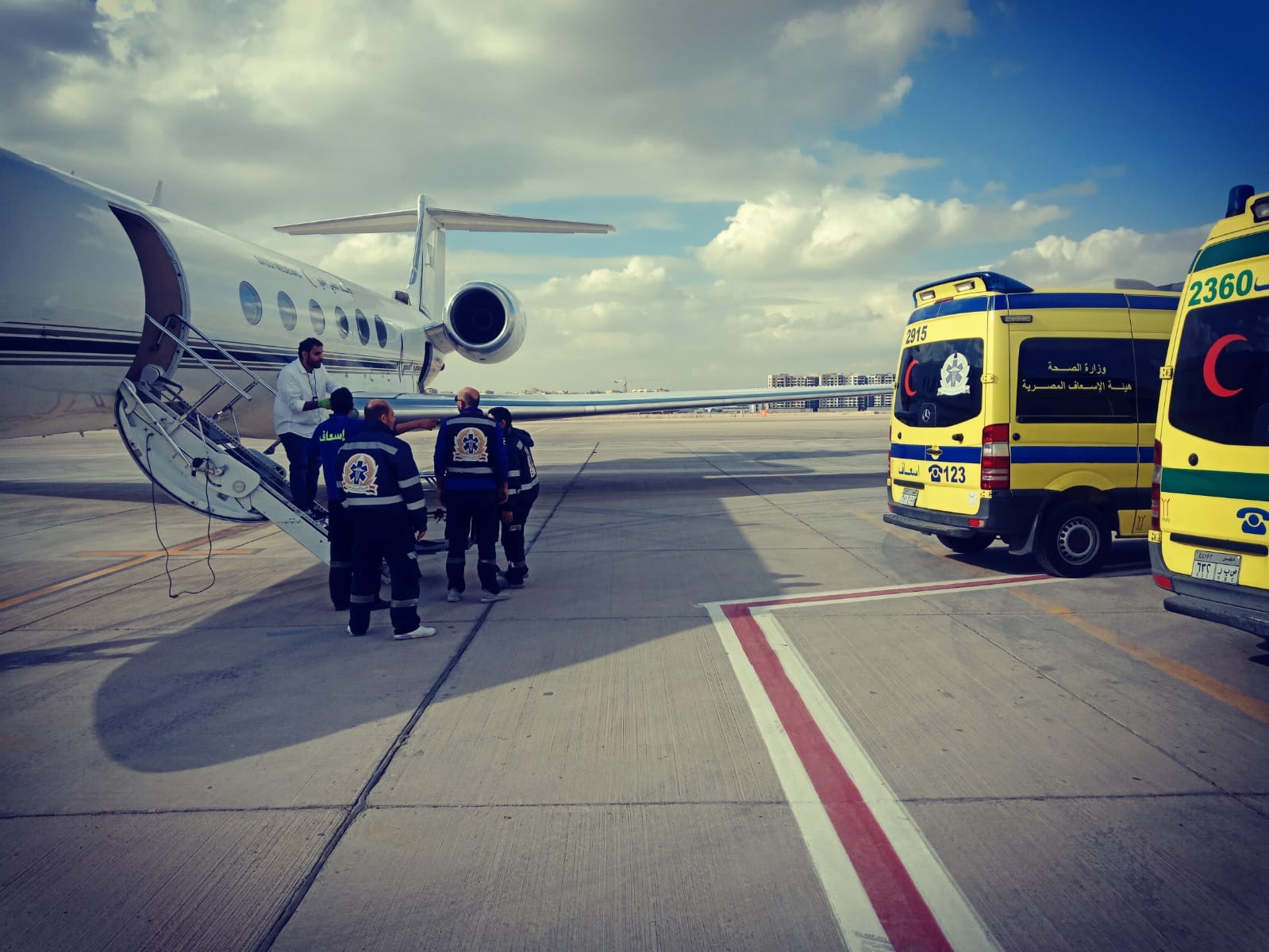طائرة الإخلاء الطبي تنقل ثلاث حالات طبية حرجة من مطار القاهرة الدولي لاستكمال علاجهم في المملكة