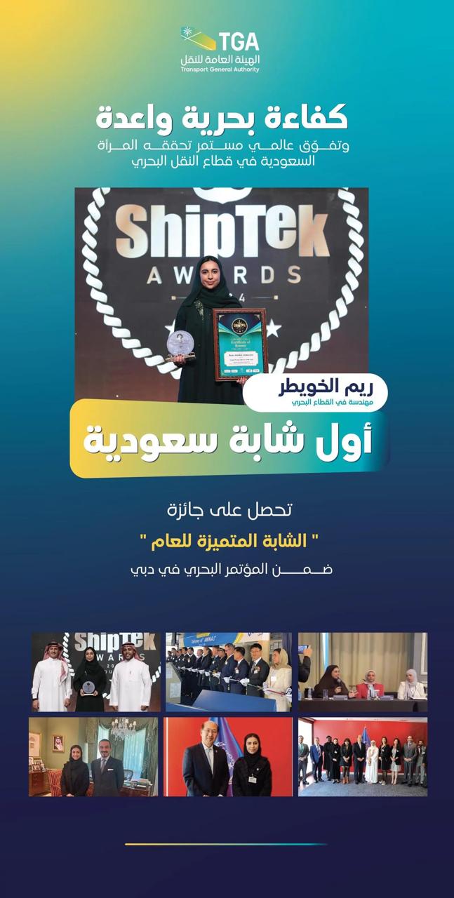 يذكر أن نسبة عمل والتحاق المرأة السعودية في القطاع النقل البحري في ارتفاع، حيث يأتي ذلك في إطار السعي لتمكين الكوادر النسائية في قطاع النقل البحري، مما يعكس الجهود المستمرة لتحقيق مستهدفات الإستراتيجية الوطنية للنقل والخدمات اللوجستية، فيما يعد مؤتمر Shiptek أحد المؤتمرات البحرية الرائدة في قطاع النقل البحري، حيث انعقد المؤتمر هذا العام في دبي خلال الفترة 24-25 يناير 2024م.