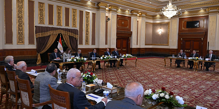 والسيد القصير، وزير الزراعة واستصلاح الأراضي، واللواء هشام آمنة، وزير التنمية المحلية.