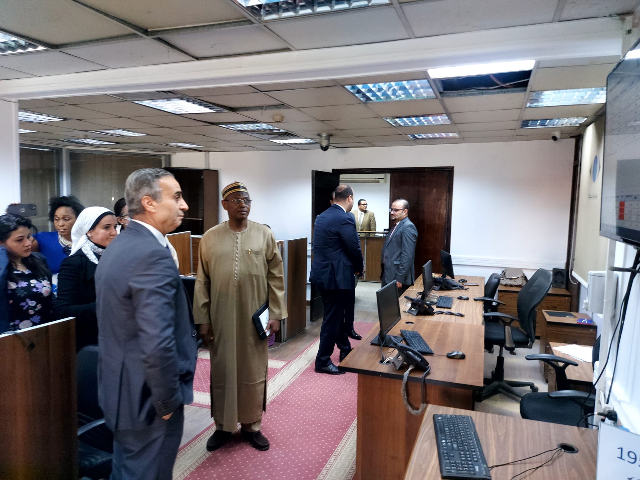وقام السجيني ، بإصطحاب السيد “ادامو عبد الحي ” والوفد المرافق له لعمل جولة تفقدية بإدارات الجهاز المختلفة والتعرف علي طبيعة وكيفية عمل كل إدارة ، وأثناء الجولة