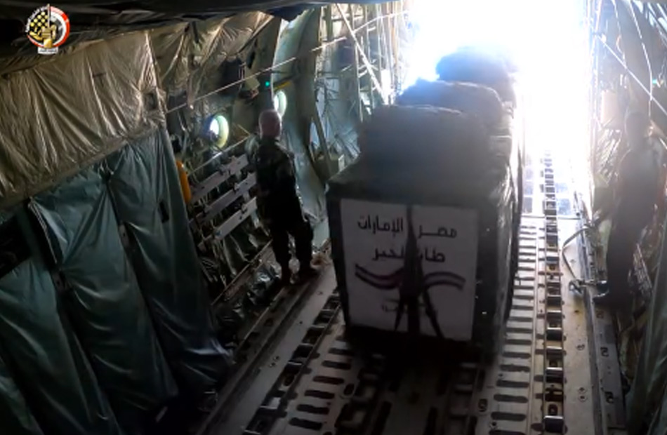 مصر والإمارات، واصلت طائرات النقل العسكري المصرية والإماراتية الإقلاع من مطار العريش لتنفيذ أعمال الإسقاط الجوى لعشرات الأطنان من المساعدات والمواد الإغاثية العاجلة للتخفيف من الأزمة الإنسانية الحادة التى يعانى منها المواطنون الفلسطينيون فى شمال غزة، تنفيذًا لتوجيهات الرئيس عبدالفتاح السيسى رئيس الجمهورية القائد الأعلى للقوات المسلحة باستمرار الجسر الجوى لنقل المساعدات الإنسانية العاجلة للأشقاء الفلسطينيين بقطاع غزة.