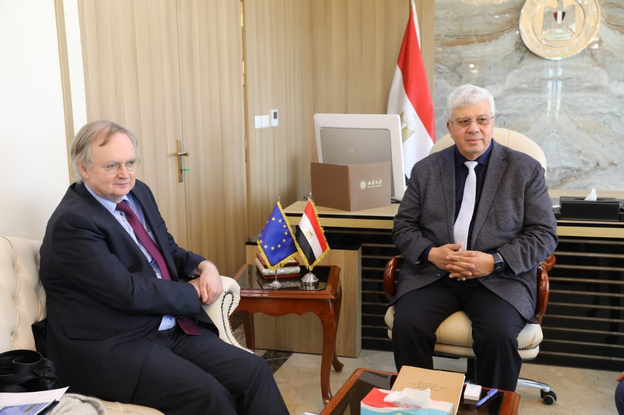 وبحث الوزير مع سفير الاتحاد الأوروبي آليات تعظيم الاستفادة من خبرات الاتحاد الأوروبي في تطبيق مبادئ الإستراتيجية الوطنية للتعليم العالي والبحث العلمي في إطار تعزيز الاهداف المتبادلة، منوهًا إلى خطة العمل التي قامت بها الوزارة لربط التخصصات العلمية وبرامج الدراسة باحتياجات الصناعة، وعمل تكامل بين الجامعات داخل كل إقليم والجهات الصناعية، ضمن مبادرة “تحالف وتنمية”.