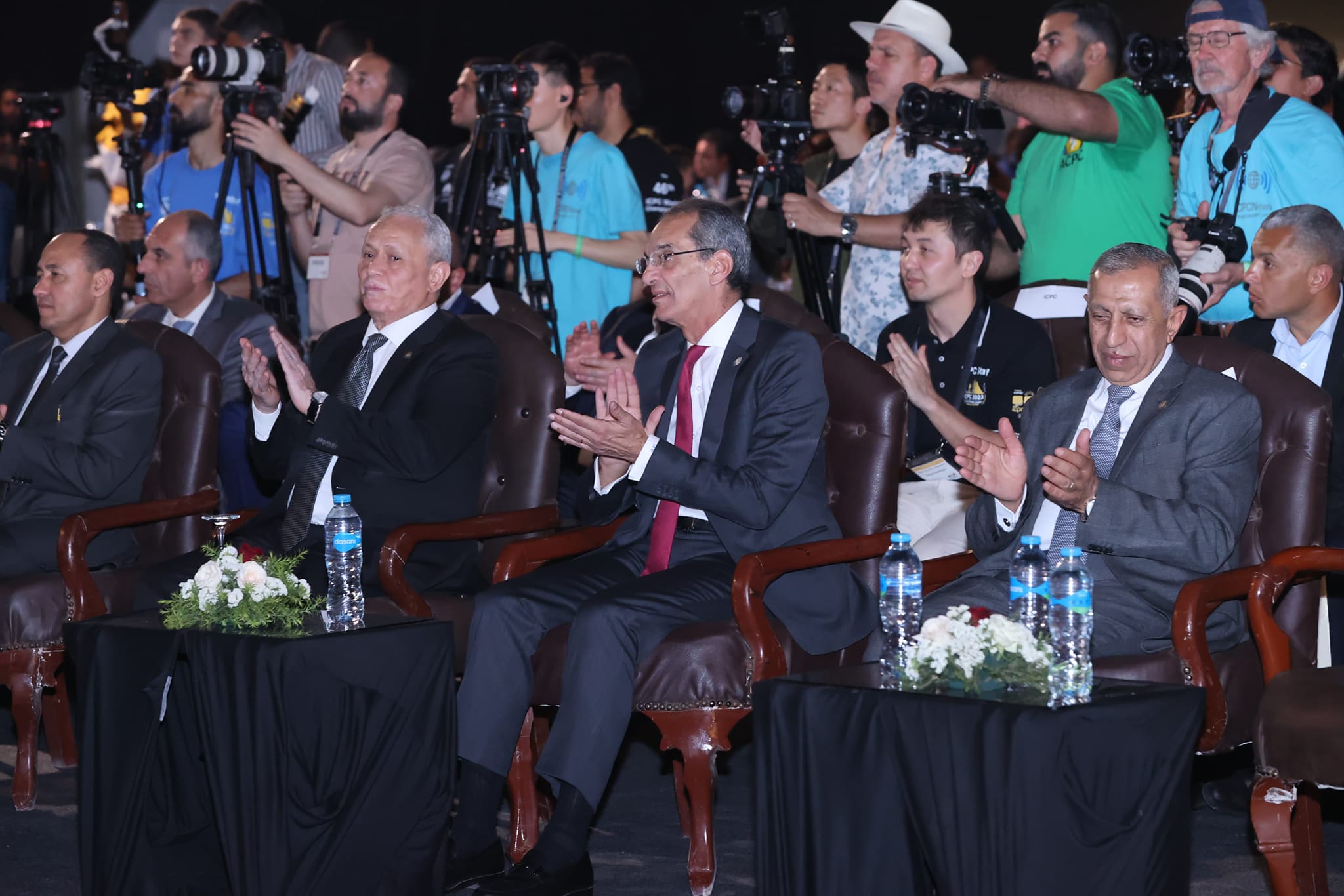 نيابة عن السيد الرئيس عبد الفتاح السيسى رئيس الجمهورية؛ شهد الدكتور عمرو طلعت وزير الاتصالات وتكنولوجيا المعلومات ختام فعاليات البطولة الدولية للبرمجيات فى دورتها السادسة والأربعون والسابعة والأربعون ومراسم توزيع جوائز الفائزين فى البطولة التى نظمتها الأكاديمية العربية للعلوم والتكنولوجيا والنقل البحرى واستضافتها محافظة الأقصر تحت رعاية السيد رئيس الجمهورية خلال الفترة من 14 حتى 18 أبريل الجارى بمشاركة قرابة 2500 طالب يمثلون 300 فريق من 111 دولة تم اختيارهم من 20 ألف فريق مشارك هذا العام؛ حيث أقيم الحفل الختامى فى معبد حتشبسوت بحضور المستشار مصطفى ألهم محافظ الأقصر، والدكتور اسماعيل عبد الغفار رئيس الأكاديمية العربية للعلوم والتكنولوجيا والنقل البحرى، والبروفيسور ويليام باوتشر الرئيس والمدير التنفيذى لمسابقة ICPC ، والدكتور يسرى الجمل وزير التربية والتعليم الأسبق ورئيس لجنة تيسير مسابقة ICPC، واللواء معتز ابراهيم ابو النور مدير الكلية الفنية العسكرية، والمهندس محمد نصر العضو المنتدب والرئيس التنفيذى للشركة المصرية للاتصالات، والدكتور حمدى محمد حسين رئيس جامعة الأقصر.