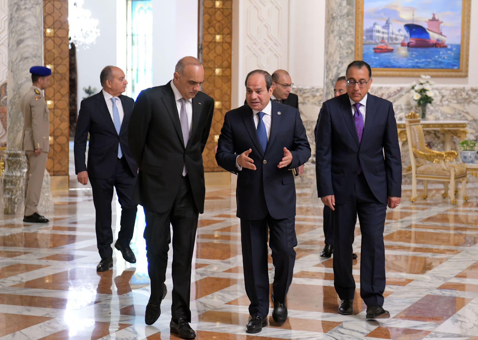 استقبل الرئيس عبد الفتاح السيسي، اليوم الخميس، الدكتور بشر الخصاونة، رئيس الوزراء ووزير الدفاع بالمملكة الأردنية الهاشمية، وذلك بحضور الدكتور مصطفى مدبولي رئيس مجلس الوزراء.