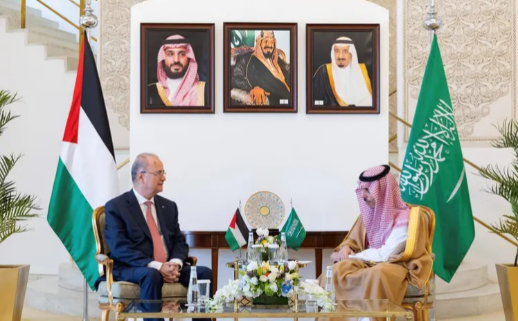 الامير فيصل بن فرحان وزير الخارجية السعودي يستقبل رئيس وزراء فلسطين وزير خارجيتها