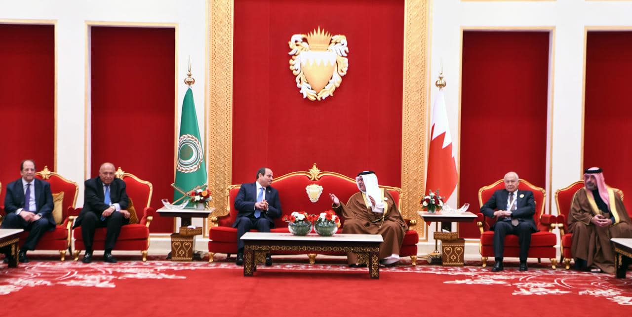 التقى الرئيس عبد الفتاح السيسي، مساء اليوم الأربعاء في العاصمة البحرينية “المنامة”، مع الملك حمد بن عيسى آل خليفة العاهل البحريني، وذلك على هامش أعمال الدورة الـ 33 لمجلس جامعة الدول العربية، التي تبدأ أعمالها غدا الخميس، على مستوى القمة.