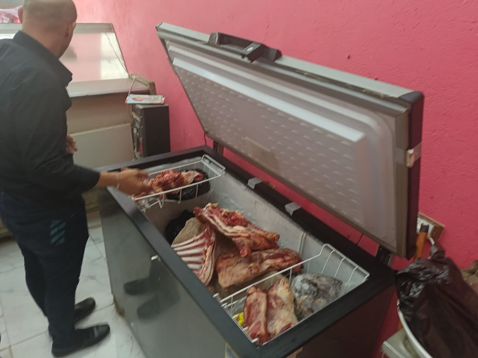 وفي نفس الاطار تمكنت جهود محافظة الجيزة بالتعاون مع مديرية الطب البيطري ومباحث التموين من ضبط مخزن به 3.5 طن هياكل دواجن غير صالحة للاستهلاك الادمي بمنطقة كرداسة وتم تحرير محضر بالواقعة كما تم ضبط سيارة نقل محملة ب 1.5 طن عجينة سجق وسجق غير صالحة للاستهلاك الادمي وتم تحرير محضر بالواقعة بإجمالي 5 طن مضبوطات مع إتخاذ الإجراءات القانونية حيال المخالفات.