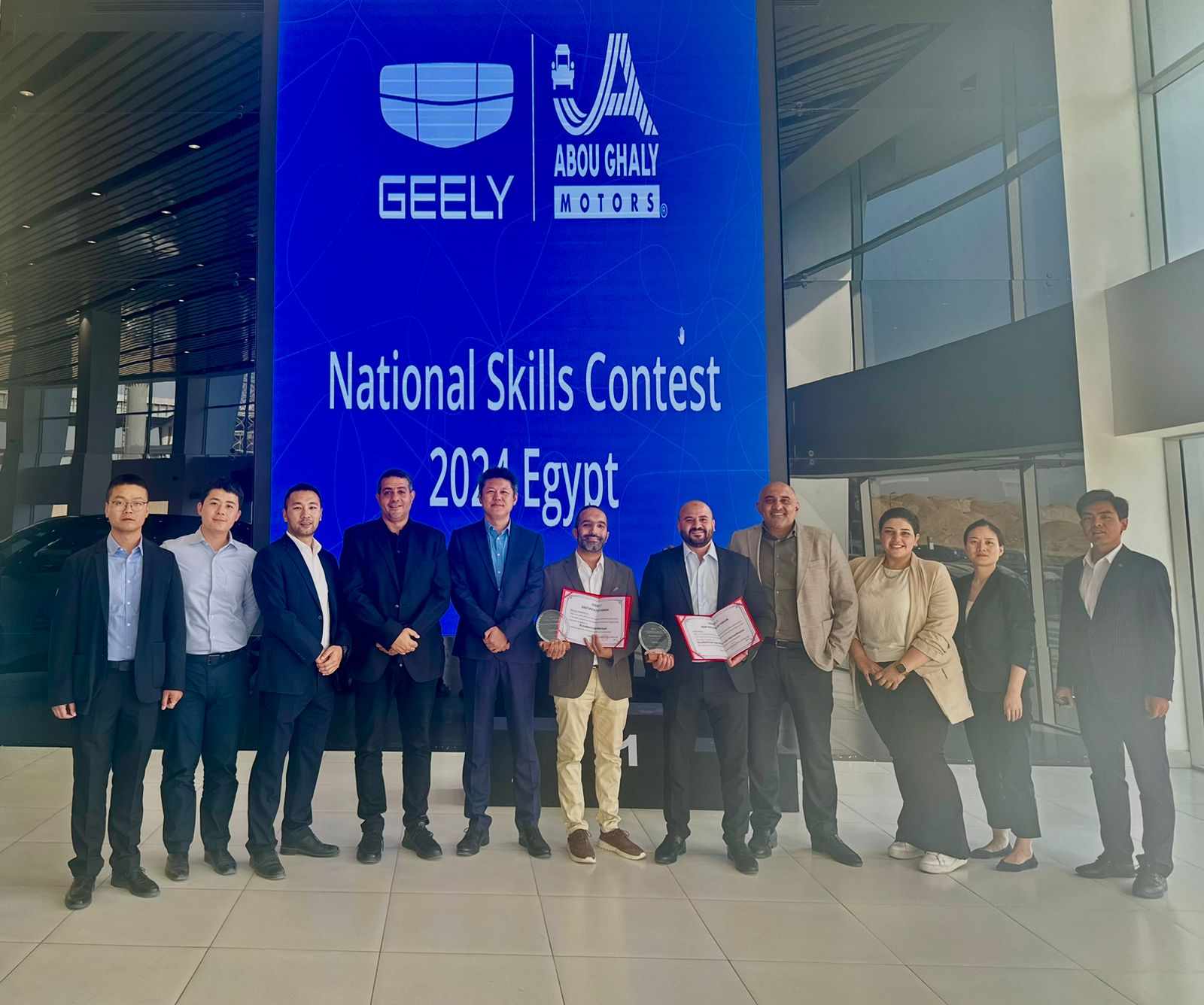 وتسلم الجائزة من مسئولي شركة چيلي العالمية فريق مجموعة أبوغالي موتورز بقيادة المهندس تامر قطب الرئيس التنفيذي لقطاع السيارات بمجموعة أبوغالي موتورز، و أمجد الفقي مدير عام چيلي أبوغالي موتورز، وم. رضا خضر مدير خدمات ما بعد البيع ونيبال أحمد مدير التسويق چيلي أبوغالي وم. مصطفى عبدالناصر مدير تطوير شبكة الموزعين چيلي أبوغالي موتورز.