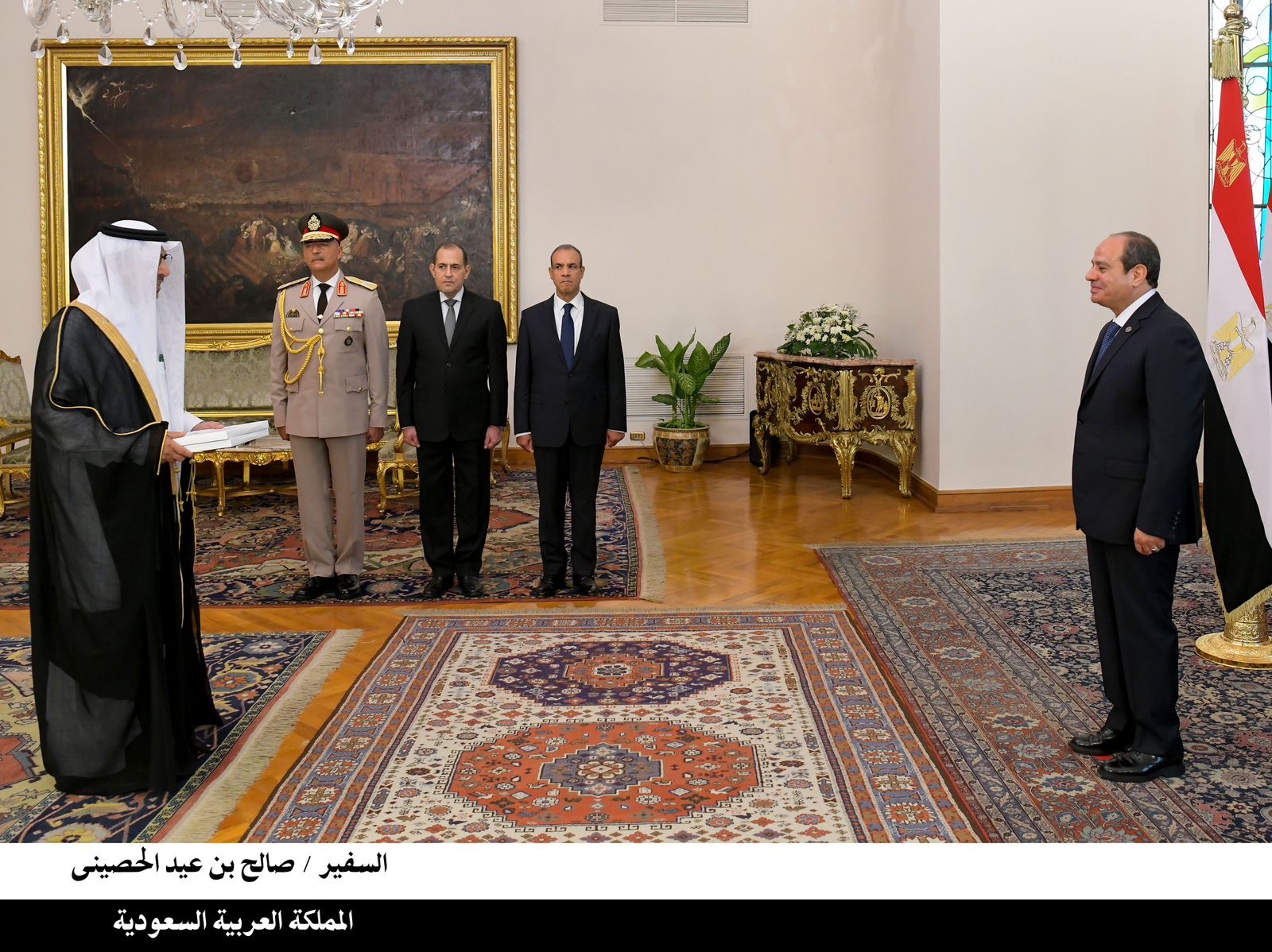 السفير صالح بن عيد الحصيني سفير خادم الحرمين الشريفين يقدم أوراق اعتماده للرئيس السيسي