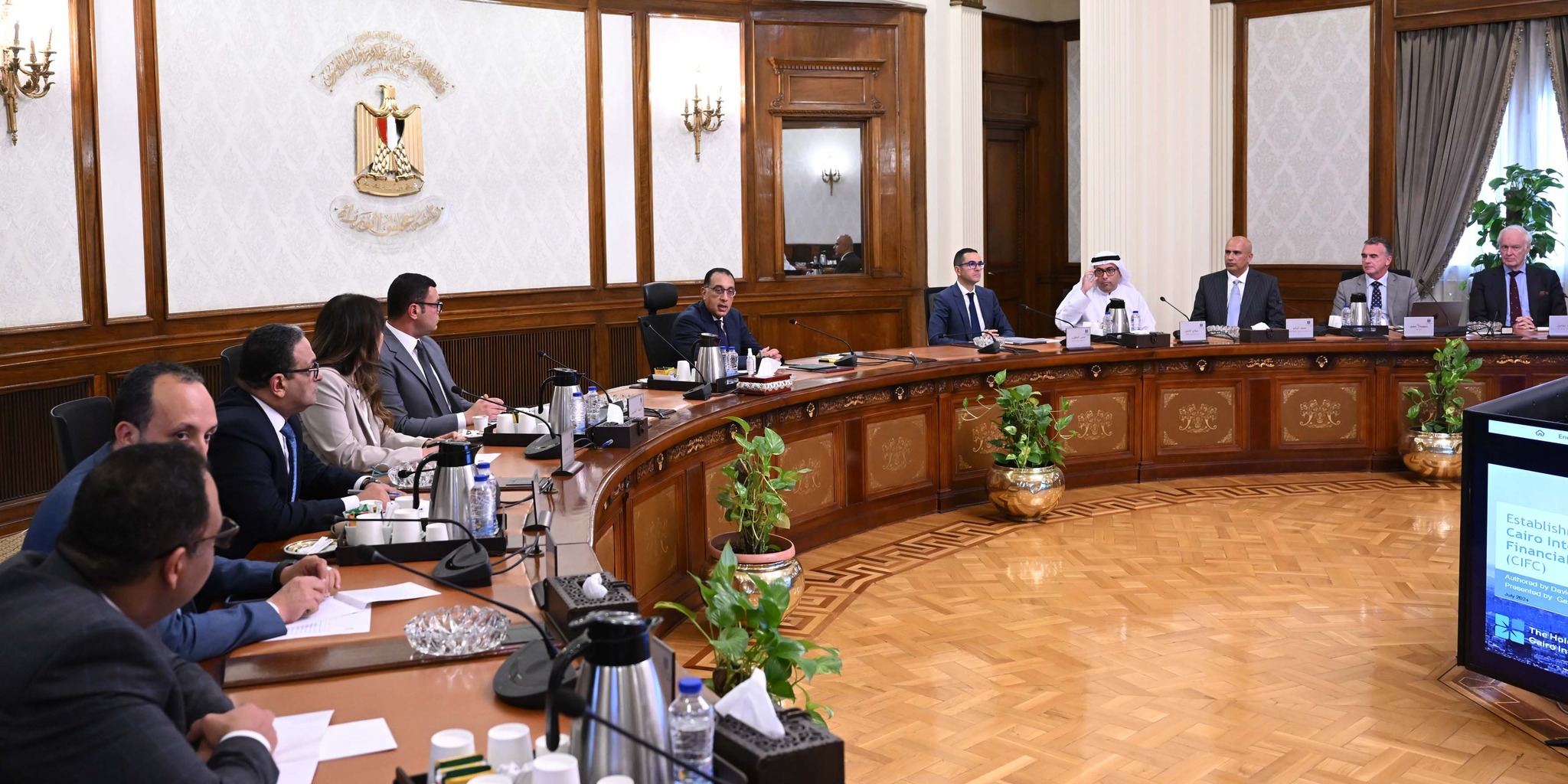 عقد الدكتور مصطفى مدبولي، رئيس مجلس الوزراء، مساء اليوم، اجتماعًا؛ لاستعراض مقترح لأحد التحالفات العالمية لإدارة “مركز القاهرة الدولي المالي “ “CIFIC” ضمن جهود الحكومة لتطوير وإدارة منطقة المال والأعمال بالعاصمة الإدارية الجديدة.