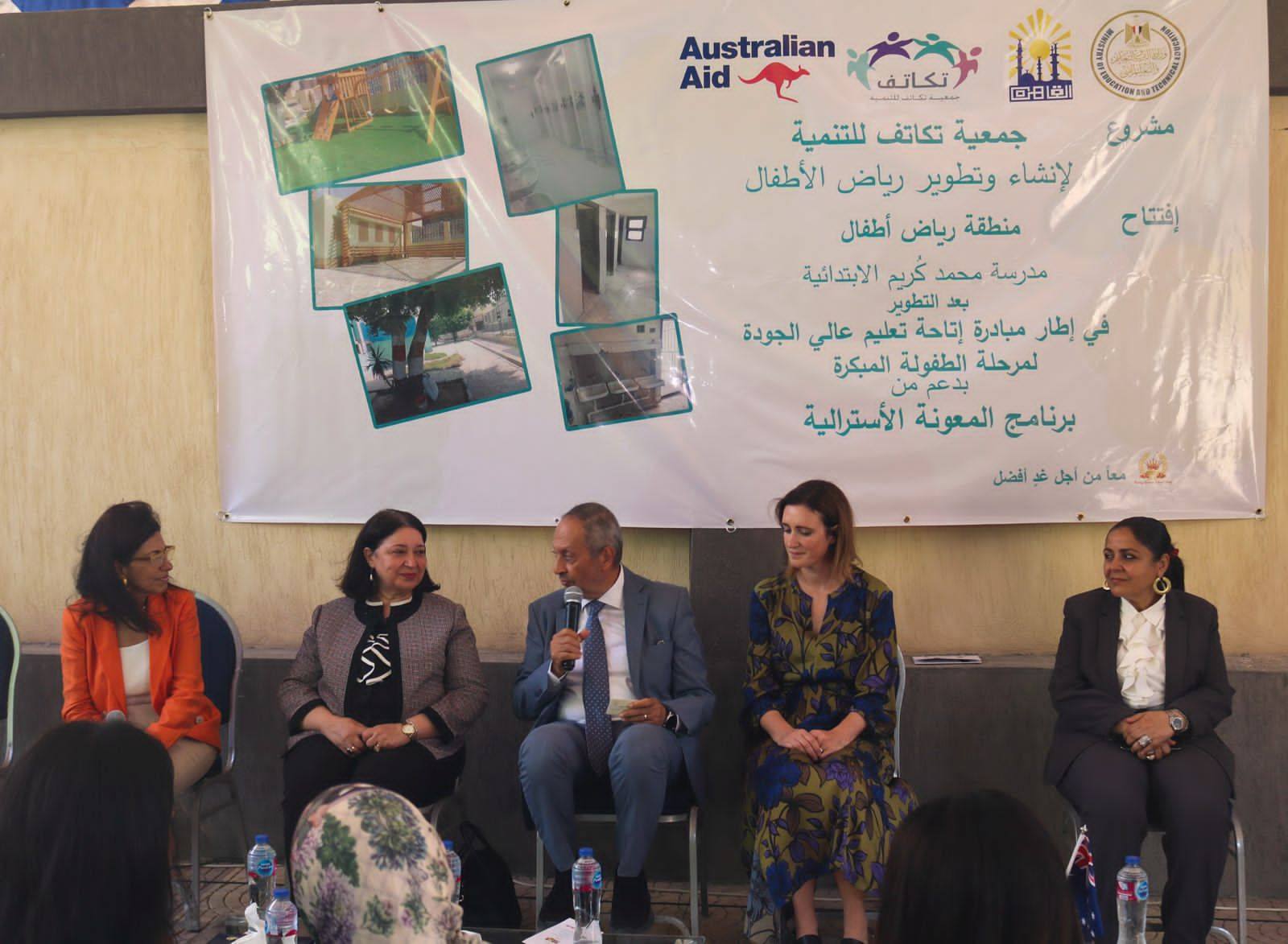 شهدت المهندسة مرجريت صاروفيم نائبة وزيرة التضامن الاجتماعي افتتاح أعمال تطوير روضة أطفال مدرسة محمد كريم الابتدائية بالمطرية بالقاهرة ، والتى نفذتها جمعية تكاتف للتنمية بالتعاون مع برنامج المعونة الأسترالية فى إطار مبادرة “اتاحة تعليم عالى الجودة” لمرحلة الطفولة المبكرة.