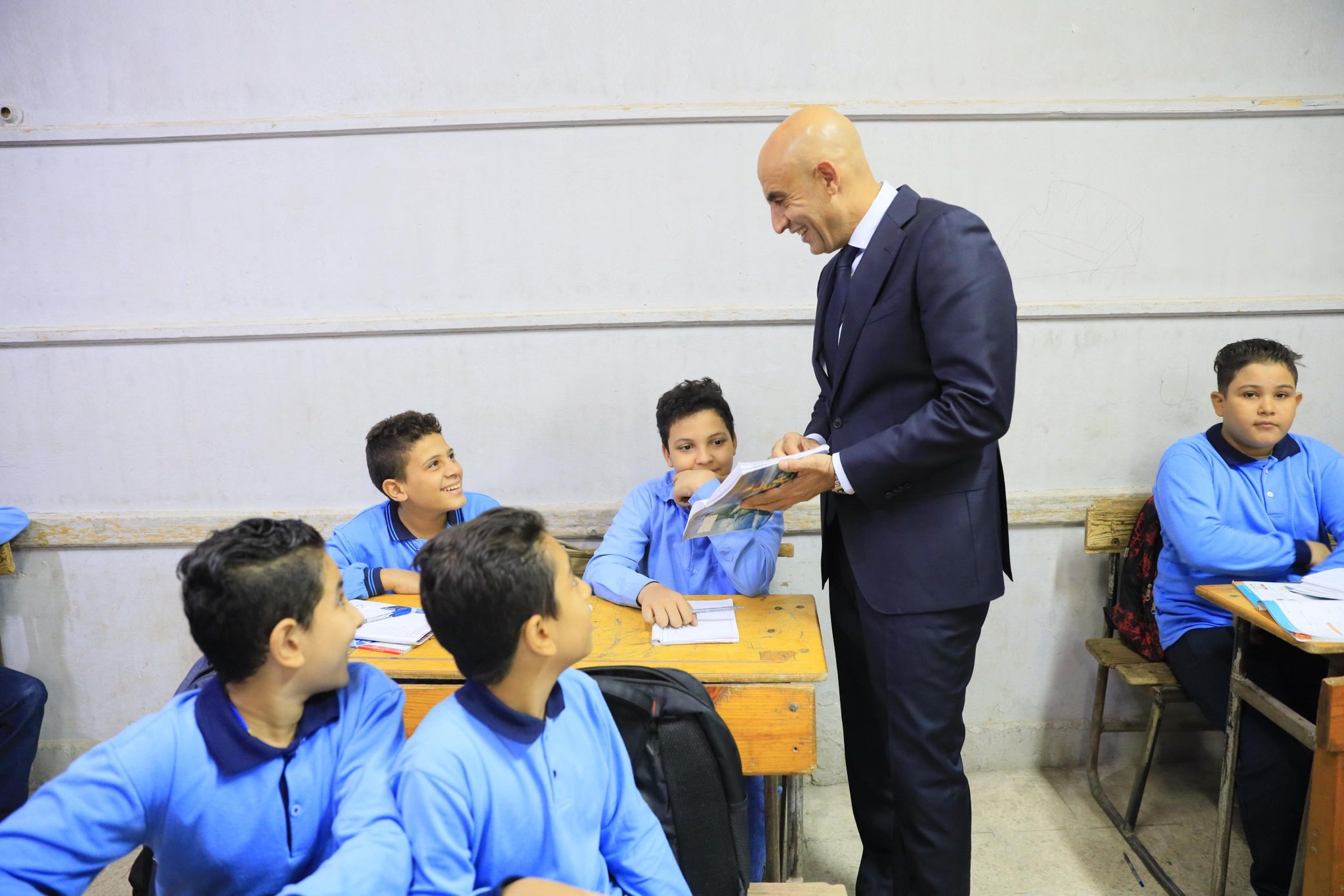 واستهل السيد الوزير محمد عبد اللطيف جولته التفقدية بمدرسة “الشهيد عصام محمد تميم الابتدائية” التي تضم ٩٩٩ طالبا وطالبة، حيث تفقد فصول الصفوف الأول والثاني والثالث الابتدائي، وتابع نسب الحضور والغياب للطلاب، مؤكدًا على أهمية الالتزام بتطبيق لائحة التحفيز التربوي والانضباط المدرسي.