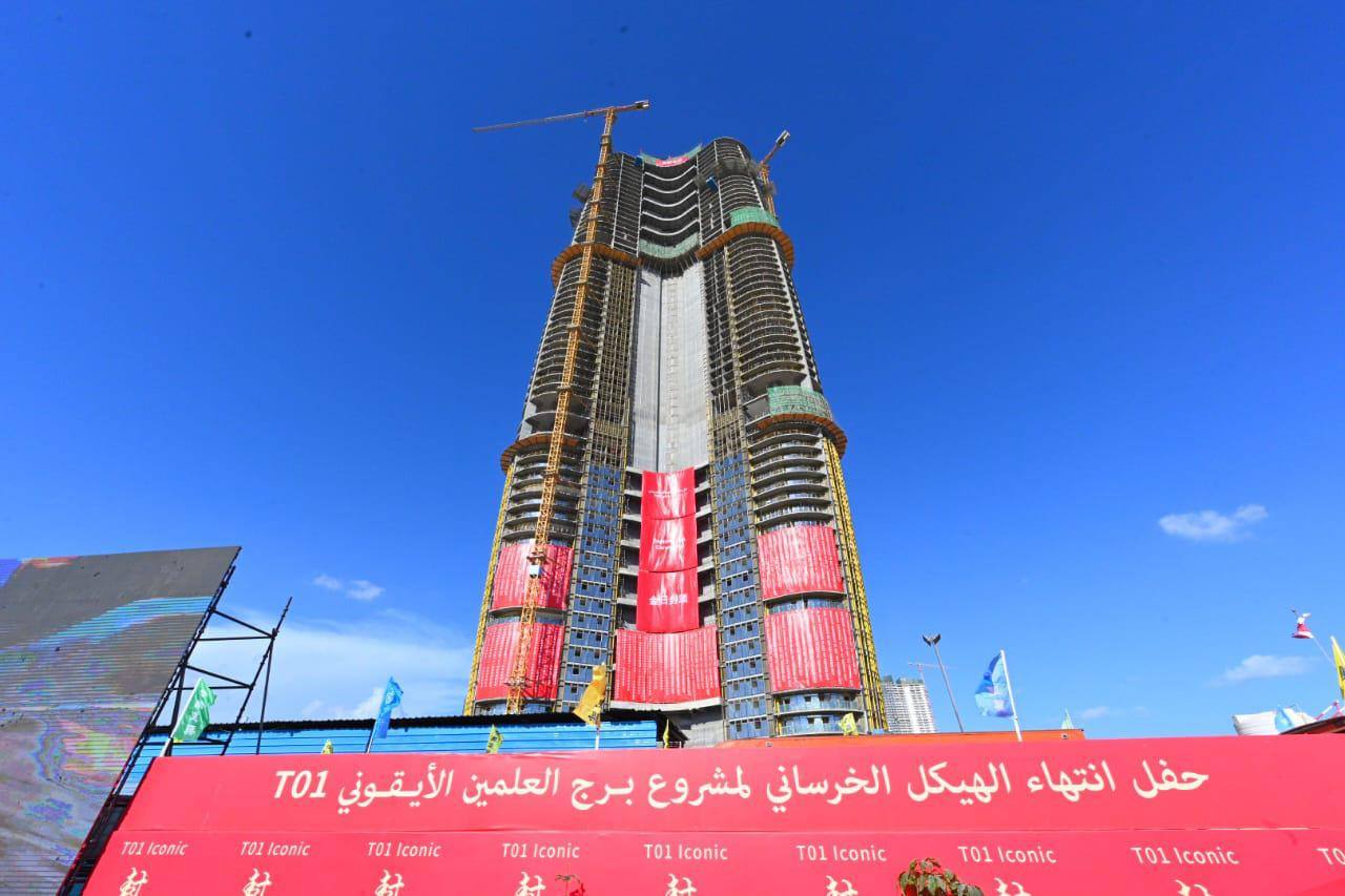 وقال الوزير، إن إنشاء الهيكل الخرساني للبرج الأيقوني كان تحدياً كبيراً بهذا الارتفاع وبشكله المتميز المنحني بالاتجاهين الرأسي والأفقي بشكل (Y-Shape)، وتم تنفيذه بمجهود عظيم وتنسيق وتعاون تام بين هيئة المجتمعات العمرانية الجديدة، واستشارى المشروع “دار الهندسة”، وشركة “CSCEC” الصينية، حيث تم الوصول لمعدلات تنفيذ عالمية بلغت 7 أيام للانتهاء من الدور الواحد كاملاً.