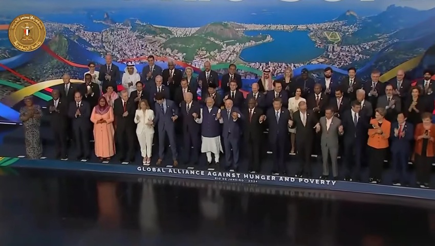 شارك الرئيس عبد الفتاح السيسي، الزعماء والقادة المشاركين في قمة مجموعة العشرين بمدينة “ريو دي جانيرو” البرازيلية، صورة تذكارية، وذلك خلال فعاليات اليوم الثاني والأخير للقمة.