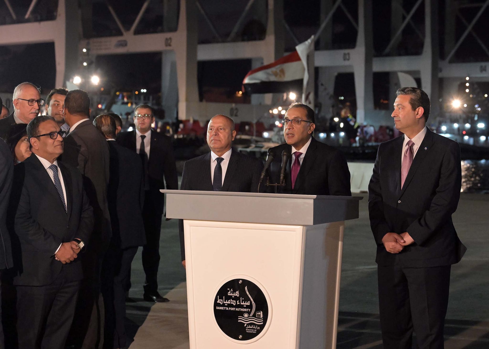 جاء ذلك خلال المؤتمر الصحفي الأسبوعي الذي عقده الدكتور مصطفى مدبولي، رئيس مجلس الوزراء، مساء اليوم، أثناء تواجده بميناء دمياط، عقب مشاركته في احتفالية تشغيل وإطلاق الرحلة الأولى لخط الرورو المصري- الإيطالي ورفع العلم على السفينة وادي العريش، وتفقده الأوناش العملاقة بمحطة حاويات “تحيا مصر 1” بالميناء، وذلك بحضور الفريق مهندس كامل الوزير، نائب رئيس مجلس الوزراء للتنمية الصناعية، وزير الصناعة والنقل، والدكتور أيمن الشهابي، محافظ دمياط.