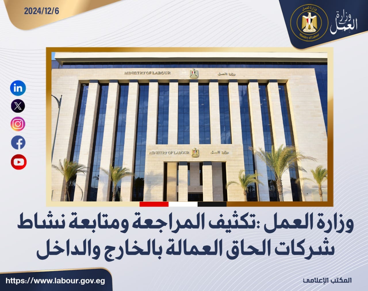 وزارة العمل : تكثيف المراجعة ومتابعة نشاط شركات الحاق العمالة بالخارج والداخل