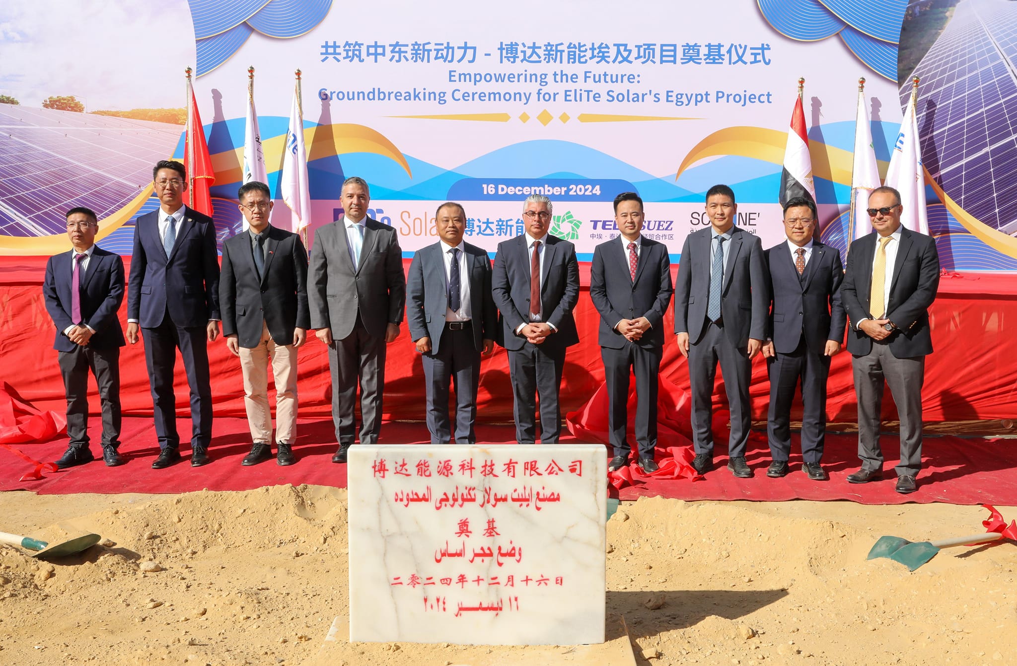 شهد وليد جمال الدين، رئيس الهيئة العامة للمنطقة الاقتصادية لقناة السويس، مراسم الاحتفال بوضع حجر الأساس لمصنع شركة “إيليت سولار للطاقة الشمسية – Elite Solar PV” الصينية بنطاق المطور الصناعي “تيدا مصر” داخل منطقة السخنة المتكاملة التابعة للمنطقة الاقتصادية لقناة السويس، ويستهدف مشروع الشركة تصنيع الخلايا الشمسية من النوع N، وتصنيع وتجميع أنظمة الطاقة الكهروضوئية “Module-Cell-Wafer”، بطاقة إنتاجية 2 جيجاوات، بتكلفة استثمارية 150 مليون دولار، ويقع المشروع على مساحة 78 ألف متر مربع بالسخنة، ويتيح 600 فرصة عمل مباشرة، ومن المخطط افتتاح المرحلة الأولى للمشروع في سبتمبر 2025؛ هذا وقد حضر مراسم الاحتفال كلٌّ من: الربان أحمد جمال، نائب رئيس الهيئة للمنطقة الجنوبية، والسيد أويانج شياو مينج، سكرتير أول السفارة الصينية بالقاهرة، والسيد ليو جين تشي، رئيس شركة إيليت سولار، والسيد لي داي شين، رئيس شركة تيدا مصر وتيدا الصين-أفريقيا.