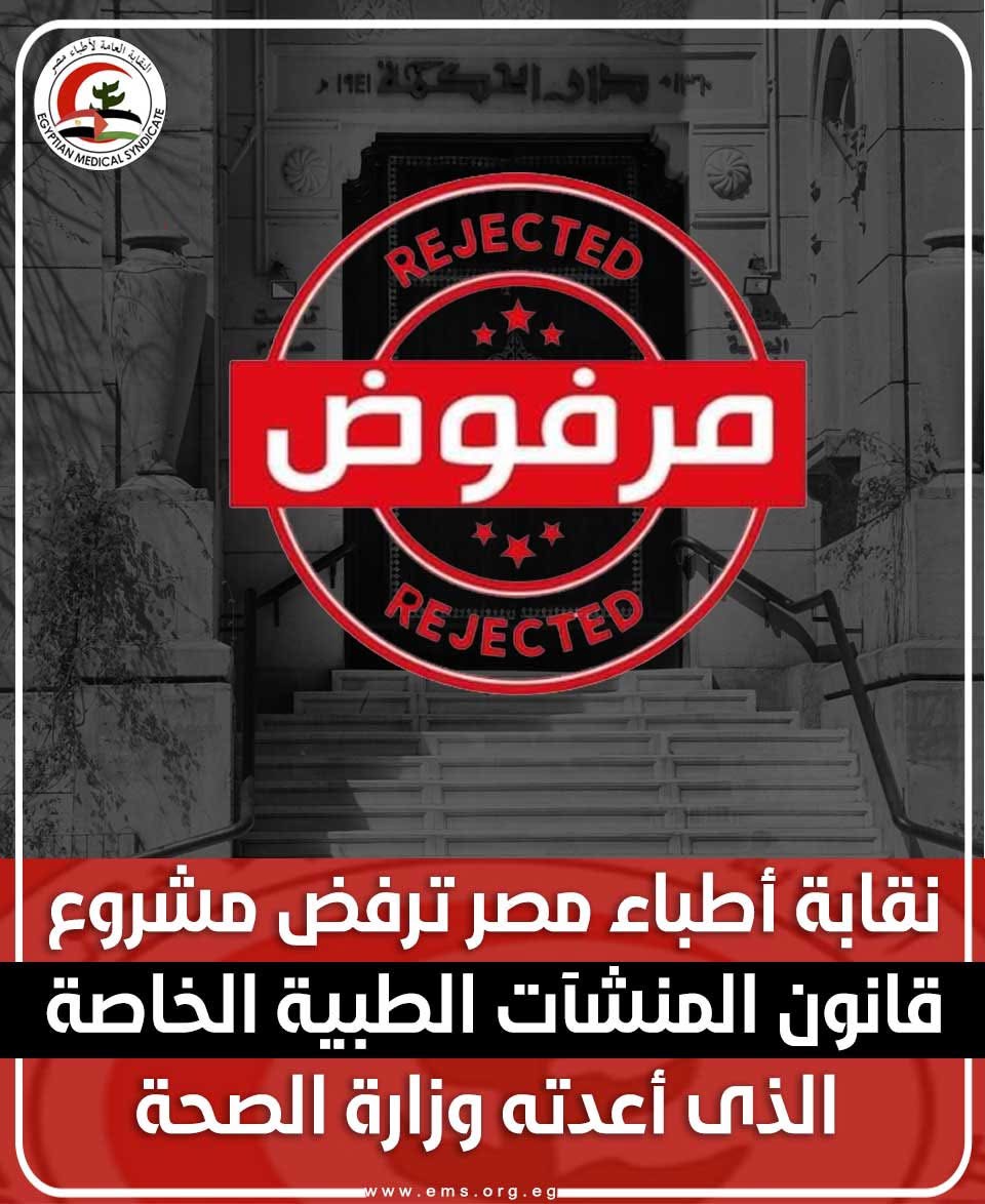 و جدير بالذكر ان نقابة اطباء مصر كانت قد خاطبت وزارة الصحة بخصوص المشروع المتداول ولم يصلها رد حتى تاريخه .