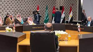 بدعوة من نائب رئيس الوزراء ووزير الخارجية وشؤون المغتربين في المملكة الأردنية الهاشمية أيمن الصفدي، واستكمالاً للاجتماع الذي استضافته المملكة العربية السعودية، بدعوة من وزير الخارجية سمو الأمير فيصل بن فرحان آل سعود، لوزراء خارجية دول مجلس التعاون لدول الخليج العربية والمملكة الأردنية الهاشمية وجمهورية العراق وجمهورية مصر العربية، ومتابعة للاتصالات التي أجراها عدد من هذه الدول مع الجمهورية العربية السورية، وبما يتفق مع المبادرة الأردنية القائمة على إطلاق دورٍ عربيٍ قيادي في جهود حل الأزمة السورية وفق منهجية خطوة مقابل خطوة والمبادرة السعودية وطروحات عربية أخرى، عقد وزراء خارجية الأردن والسعودية والعراق ومصر اجتماعاً في عَمّان اليوم مع وزير الخارجية والمغتربين في الجمهورية العربية السورية.