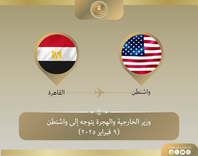 توجه د. بدر عبد العاطي وزير الخارجية والهجرة يوم الأحد ٩ فبراير إلى واشنطن في زيارة رسمية، حيث من المقرر أن يلتقى بعدد من كبار المسؤولين في الإدارة الأمريكية الجديدة وأعضاء الكونجرس.
