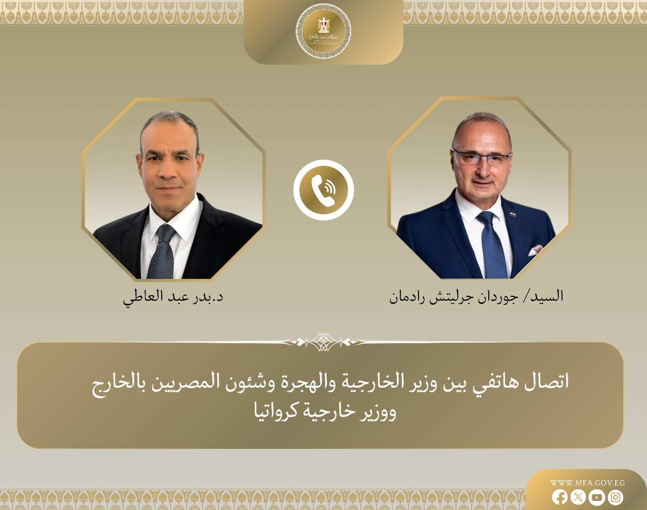 أجرى د. بدر عبد العاطي معالي وزير الخارجية والهجرة، اتصالًا هاتفيًا يوم الأربعاء ١٩ فبراير، مع السيد “جوردان جرليتش رادمان” وزير خارجية كرواتيا.