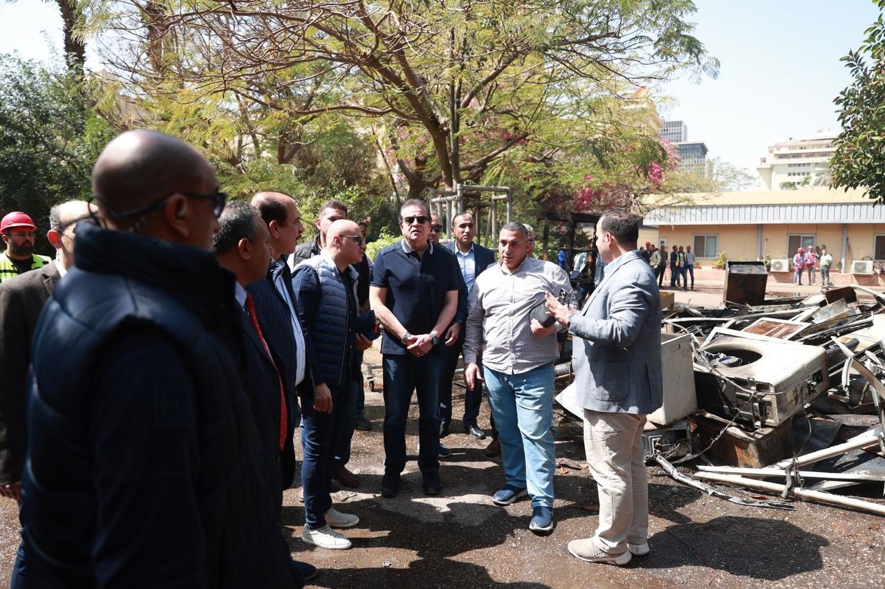 وأضاف «عبدالغفار» أن نائب رئيس مجلس الوزراء وزير الصحة تفقد موقع الحريق لتقييم الأضرار التي لحقت بعدد من المكاتب الإدارية، حيث تضمنت جولته تفقد المبنى الخلفي الذي اندلع فيه الحريق (وهو مبنى غير تابع للوزارة)، ومبنى العلاج الحر، للوقوف على حجم الأضرار وتوجيه فرق الصيانة بسرعة إصلاحها.