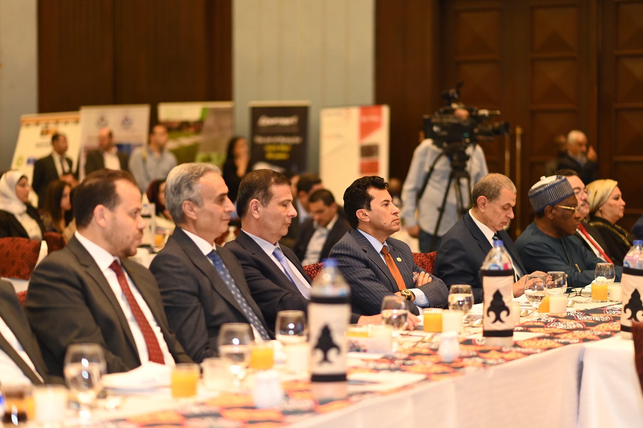والدكتور يسرى الشرقاوي رئيس الجمعية وبعض السادة السفراء وشركاء التنمية من المؤسسات والمنظمات الدولية والاقليمية، ومشاركة ممثلين عن 40 دولة افريقية ورجال الأعمال والاستثمار
