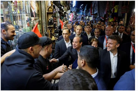 حفاوة بالغة، استقبل بها أصحاب المحال والمواطنين، الرئيس عبد الفتاح السيسي، ونظيره الفرنسي إيمانويل ماكرون، خلال الزيارة التاريخية لمنطقة الحسين وخان الخليلي، على هامش الزيارة التي يقوم بها الرئيس الفرنسي للقاهرة.