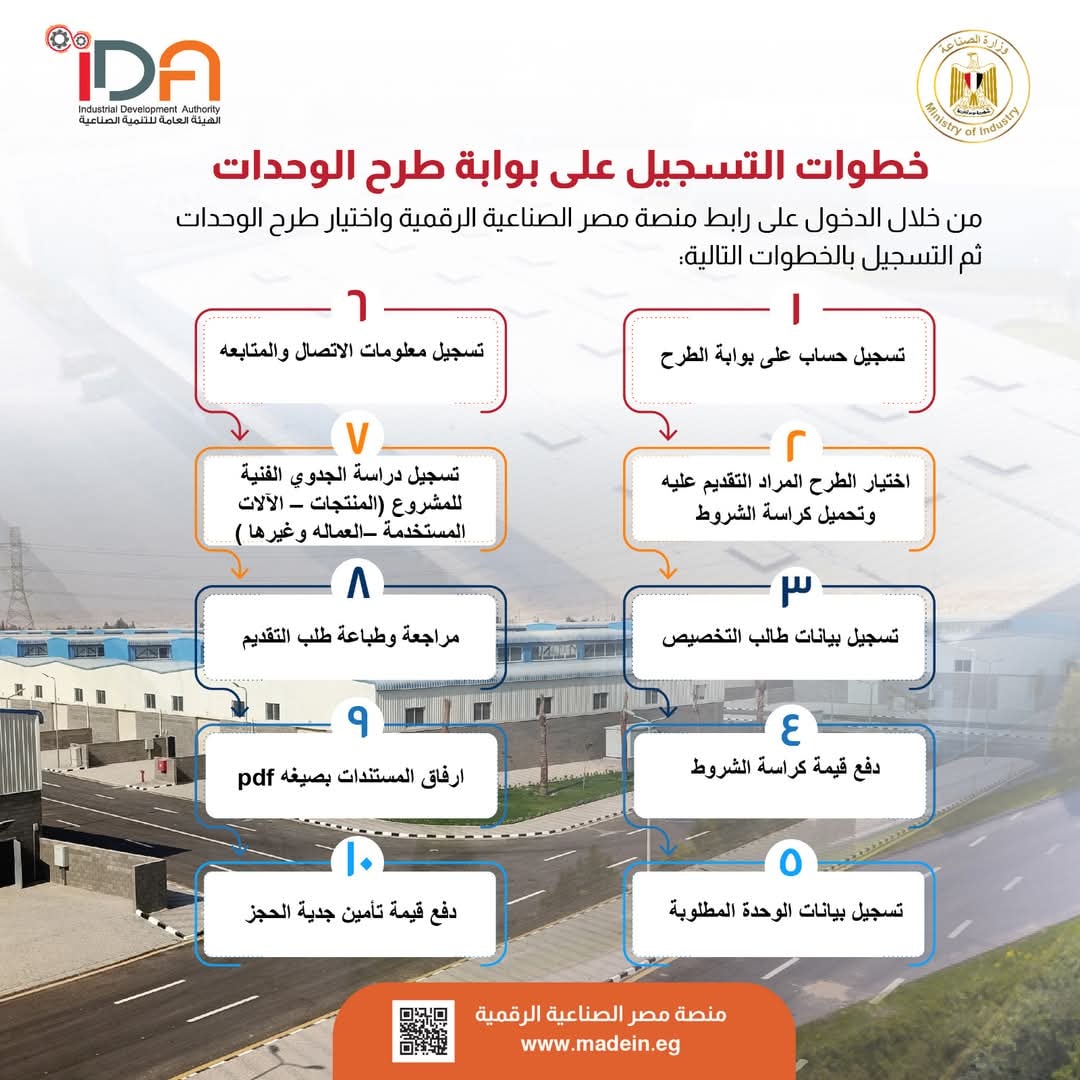 تقدم إلكترونيًا من خلال رابط بوابة طرح وحدات صناعية عبر المنصة www.madein.eg واتبع هذه الخطوات المبسط