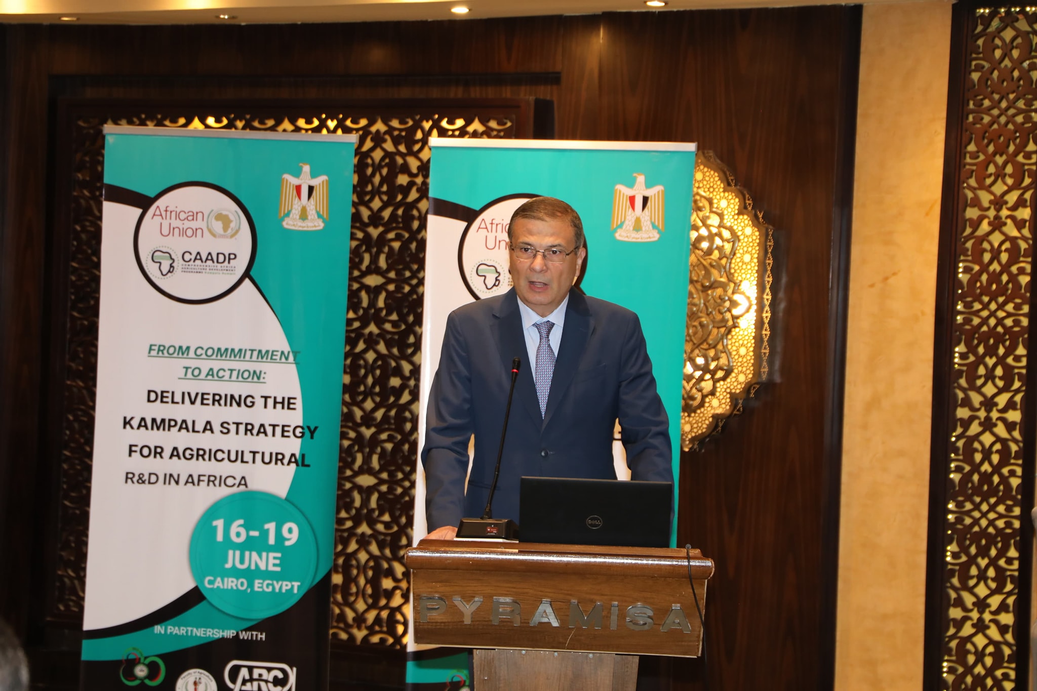 جاء ذلك خلال كلمته في افتتاح ورشة العمل الأولى لتنفيذ التزامات إعلان كمبالا، والتي تستضيفها مصر، تحت عنوان: “من الالتزام إلى العمل لتنفيذ استراتيجية كمبالا للبحث والتطوير الزراعي في أفريقيا”، بحضور: مدير مكتب الاتحاد الإفريقي للبحث والتطوير بمفوضية الاتحاد الإفريقي، السكرتير التنفيذي لمنتدى البحوث الزراعية في أفريقيا، السكرتير التنفيذي للصندوق العربي للدعم الفني للدول الإفريقية، والدكتور عادل عبد العظيم رئيس مركز البحوث الزراعية، والدكتور سعد موسى المشرف على العلاقات الزراعية الخارجية، فضلًا عن ممثلي هيئات ومنظمات الاتحاد الإفريقي.