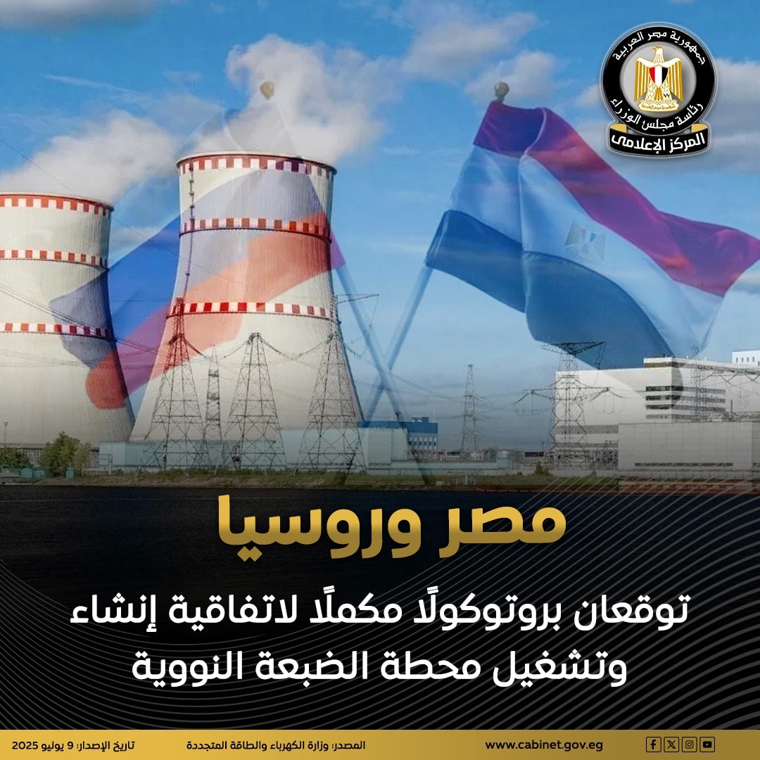 📍 البروتوكول يأتي في إطار التعاون الممتد بين مصر وروسيا في مجال الطاقة النووية