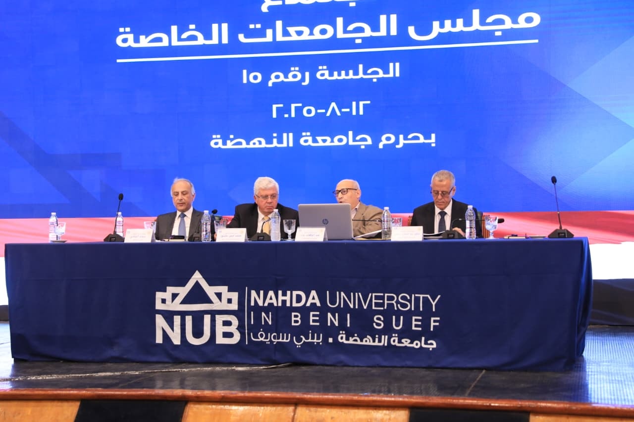 في بداية الاجتماع، قدم المجلس الشكر لأسرة جامعة النهضة برئاسة كل من د.حسام الملاحي رئيس الجامعة، وم.محمد الرشيدي رئيس مجلس أمناء الجامعة؛ لاستضافة اجتماع مجلس الجامعات الخاصة.