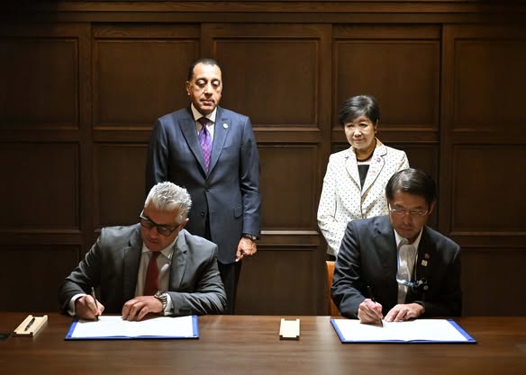 على هامش مشاركته، نيابة عن فخامة الرئيس عبد الفتاح السيسي، رئيس الجمهورية، في مؤتمر طوكيو الدولي للتنمية في أفريقيا بدورته التاسعة، قمة “تيكاد ٩”، التي تستضيفها مدينة يوكوهاما اليابانية، شهد صباح اليوم الدكتور مصطفى مدبولي، رئيس مجلس الوزراء، مراسم توقيع مذكرة تفاهم للتعاون في مجال الهيدروجين الأخضر، بين الهيئة العامة للمنطقة الاقتصادية لقناة السويس بجمهورية مصر العربية، ومكتب الشئون الصناعية والعمالية التابع لحكومة طوكيو الحضرية، وذلك بحضور السيدة “يوريكو كويكي”، محافظ طوكيو.