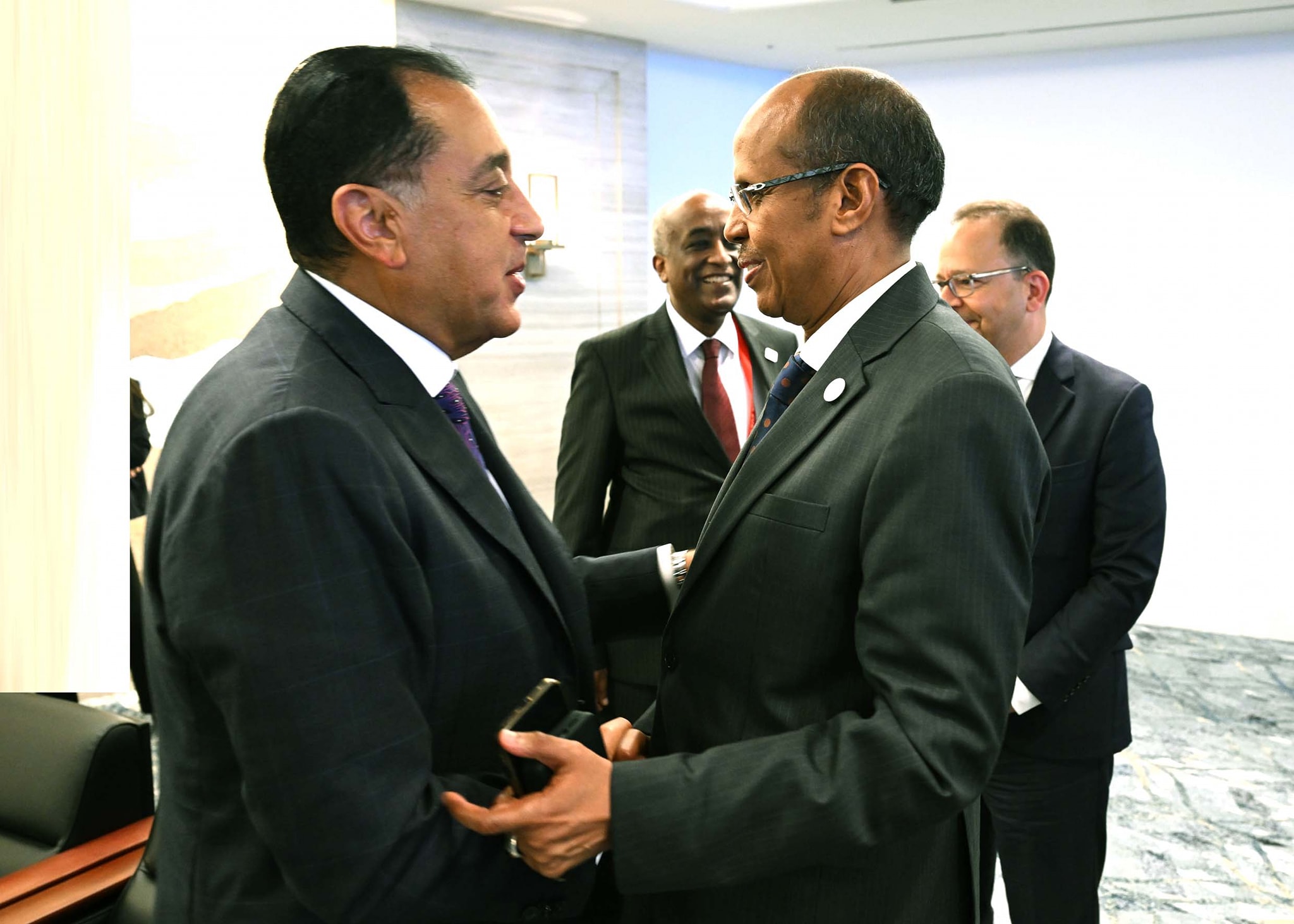 التقى الدكتور مصطفى مدبولي، رئيس مجلس الوزراء، اليوم؛ السيد محمود علي يوسف، رئيس مفوضية الاتحاد الأفريقي، وذلك على هامش مشاركته، نيابة عن فخامة السيد الرئيس عبد الفتاح السيسي، رئيس الجمهورية، في مؤتمر طوكيو الدولي للتنمية في أفريقيا بدورته التاسعة، قمة “تيكاد ٩”، التي تستضيفها مدينة يوكوهاما اليابانية، وذلك بحضور السفير محمد أبو بكر، سفير مصر لدى اليابان، والسفير محمد جاد، سفير مصر لدى إثيوبيا ومندوب مصر الدائم لدى الاتحاد الأفريقي.