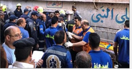 هرعت سيارات المطافي والاسعاف وتم استخراج 5 جثث و25 مصابا حتي الآن بينما يتم البحث عن ضحايا آخرين
