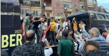 فرحة المتحف الكبير تملأ شوارع فيصل.. أعلام وباصات احتفالية تجوب الشوارع