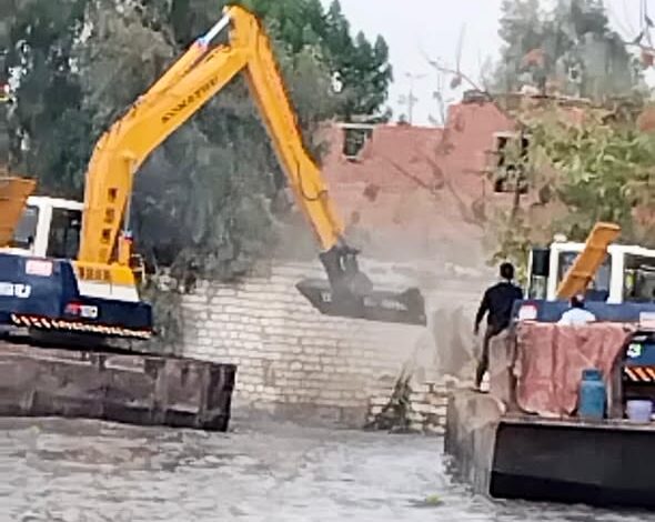 وقد تم يوم ١٠ نوفمبر ٢٠٢٥ تنفيذ إزالات لعدد (٤٥) تعدٍ على فرع رشيد، شملت مباني مخالفة وأعمال ردم داخل المجرى المائي للنهر، وذلك تنفيذًا للإجراءات القانونية الصادرة في حينها تجاه هذه المخالفات، وبالتنسيق مع الجهات المعنية لضمان تنفيذ الإزالات بشكل منظم وآمن .
