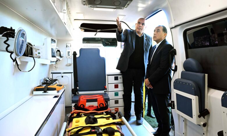 وتفقد رئيس الوزراء نموذجا لإحدى سيارات الإسعاف، ضمن سيارات الخدمة بنقطة الإسعاف، واطلع على الإمكانات المتوافرة بها لخدمة أهالي القرى التي تخدمها، وخدمة الطرق السريعة والزراعية.