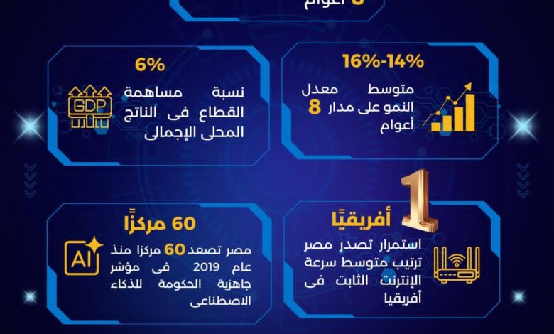 شهد قطاع الاتصالات وتكنولوجيا المعلومات فى مصر خلال عام 2025 تطورًا متسارعًا عزز مكانته كأحد المحركات الرئيسية للنمو الاقتصادى، إلى جانب دوره الحيوى كقطاع خدمى وإنتاجى فى آنٍ واحد. وجاء هذا التطور ثمرة التوسع فى تنفيذ مشروعات التحول الرقمى، وتطوير البنية التحتية الرقمية، وتسريع وتيرة تبنى التكنولوجيات الحديثة، وفى مقدمتها الذكاء الاصطناعى والجيل الخامس، بما يدعم مستهدفات استراتيجية مصر الرقمية. وأسهمت هذه الجهود فى التوسع فى رقمنة الخدمات الحكومية، وتعزيز توظيف التكنولوجيات الحديثة فى تطوير كافة قطاعات الدولة إلى جانب زيادة الصادرات الرقمية، وجذب الاستثمارات، وخلق فرص عمل جديدة، بما يعكس تحولًا نوعيًا فى دور القطاع وتأثيره المباشر على تحقيق التنمية ودفع نمو الاقتصاد.